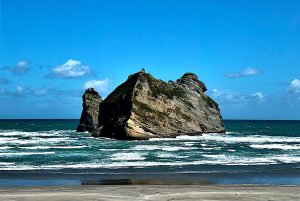 “On a Mish” #245 The Edge of the Earth. Wharariki Beach. Cape Farewell. 18.1.2021. At the top of Te Waipounamu at the northwest tip of