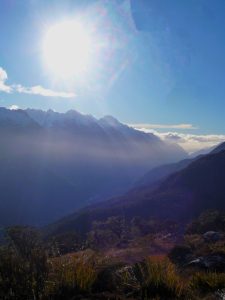 “On a Mish” #167 Last Light of the Day (Part Two). Peak 1494m(Ailsa Range). Lake Mackenzie Basin. Fiordland National Park. 6.6.2012. We humans are lucky
