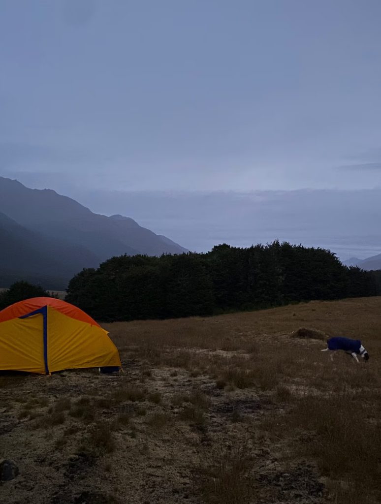 Early-ish the next day I woke to what I thought was leaves from the beech trees nearby tapping the top of my tent. ‘Surely it could be rain, there wasn’t any in the forecast?’ To my surprise the Mavora area was getting an early morning soaking thanks to some unexpected rain. I was surprised, but also grateful that all I had to do was have some breakfast and then get my gear back down to my car.